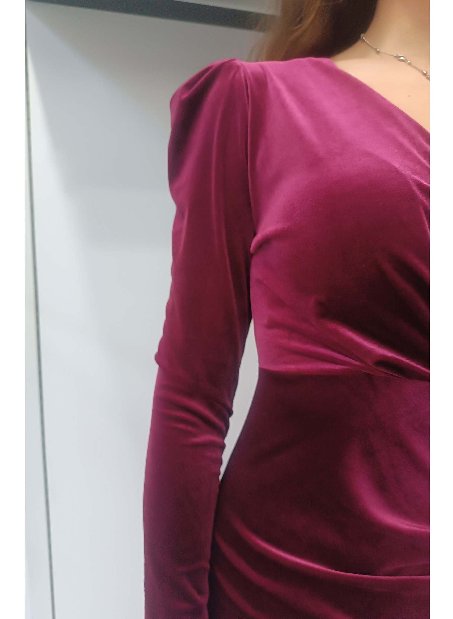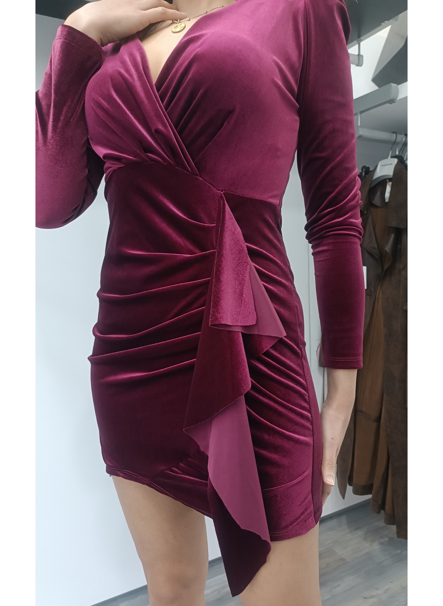 Abito corto, tubino, in velluto, elasticizzato, in colore bordeaux