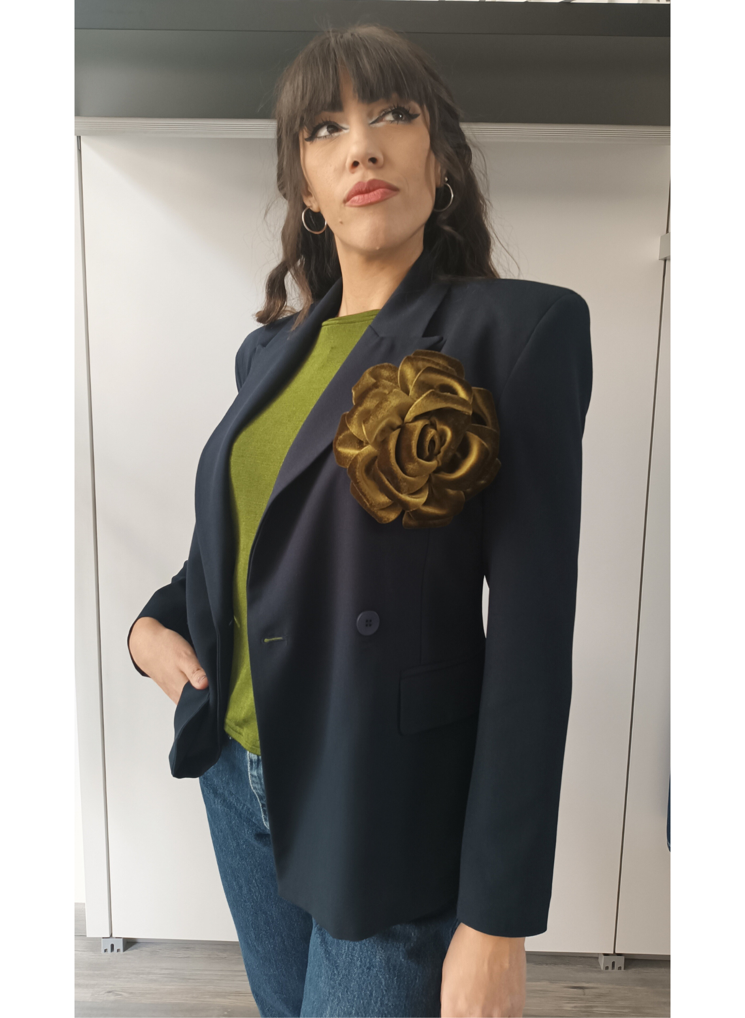 Blazer lungo, in colore blu notte, con chiusura doppiopetto, a due bottoni