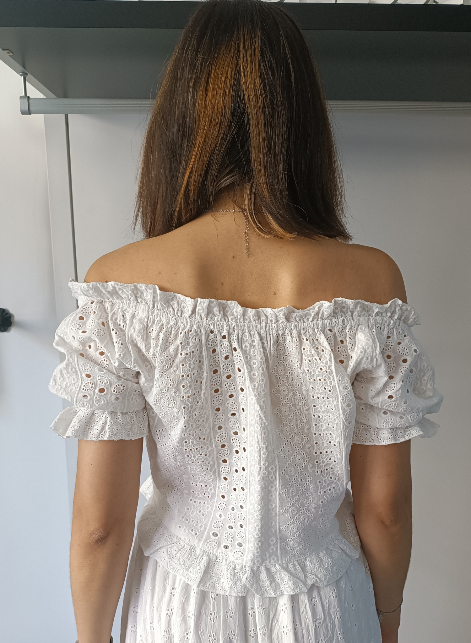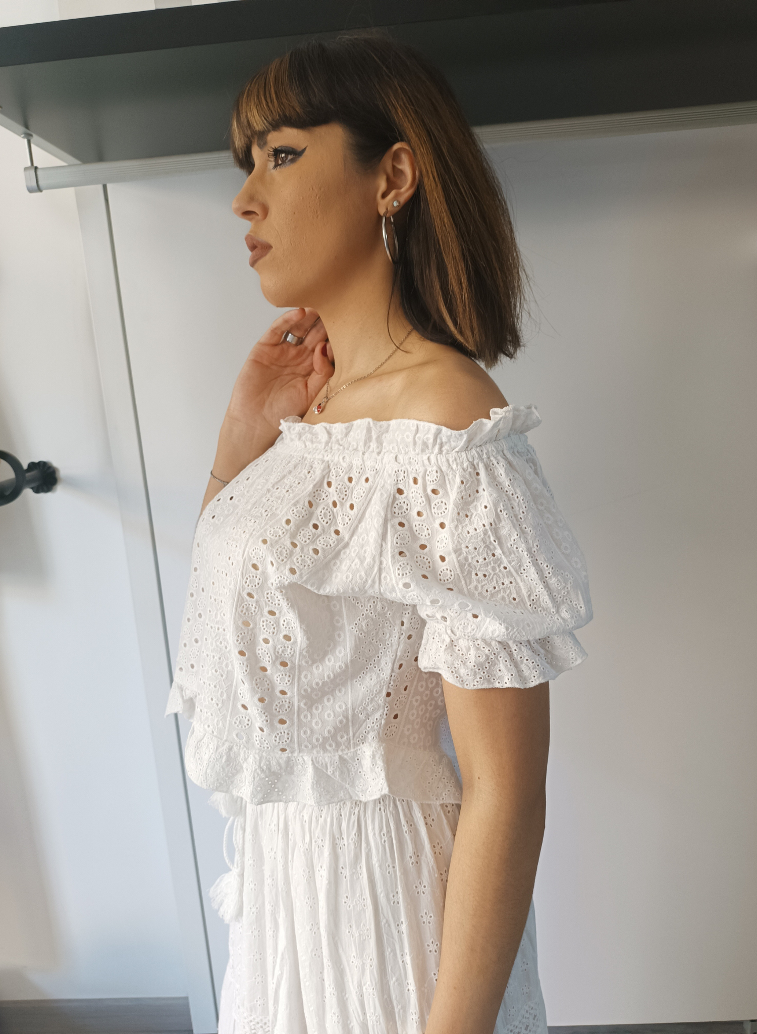 Maglia crop bianca in cotone sangallo.