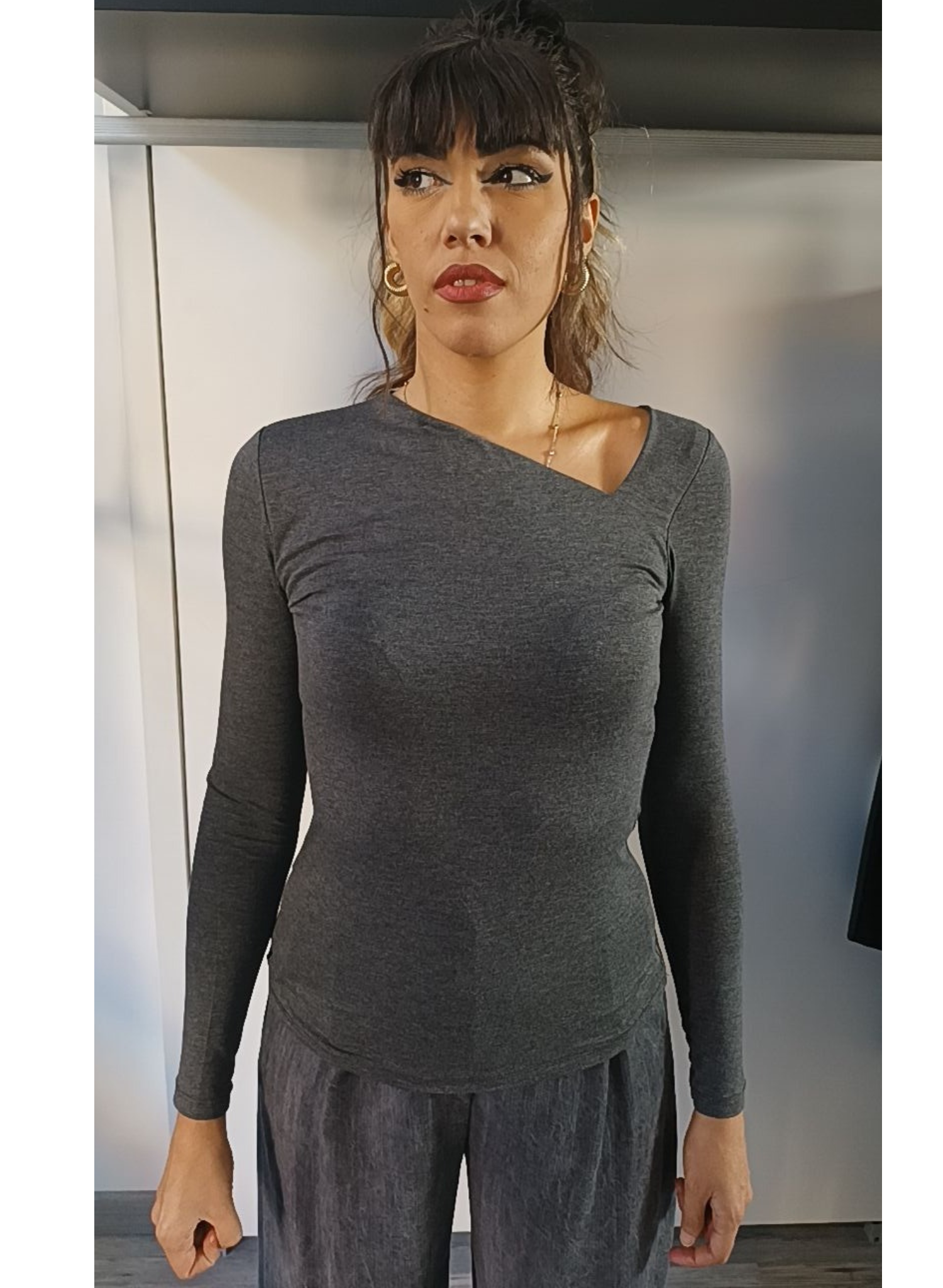 Maglia grigia scollo asimmetrico