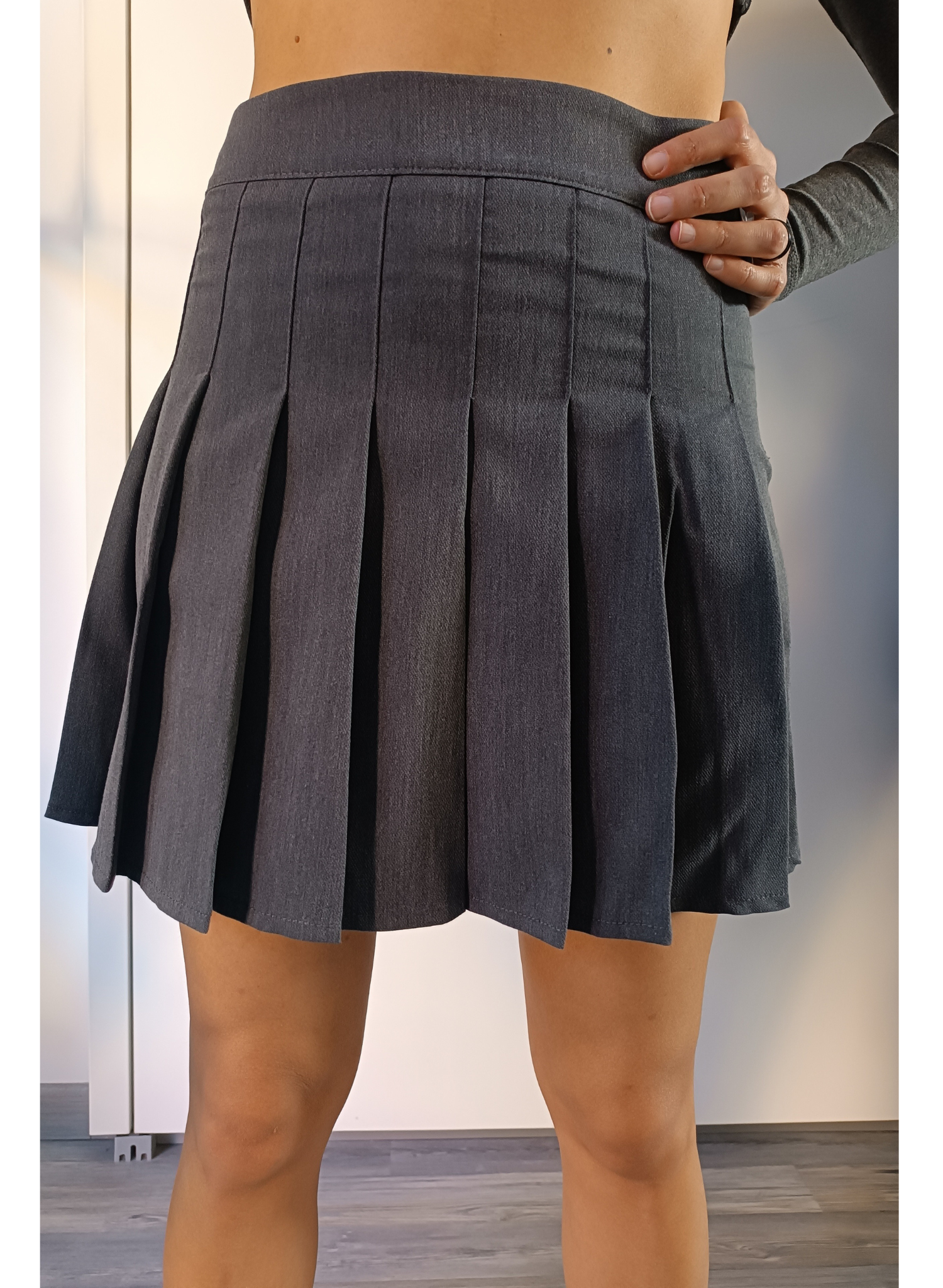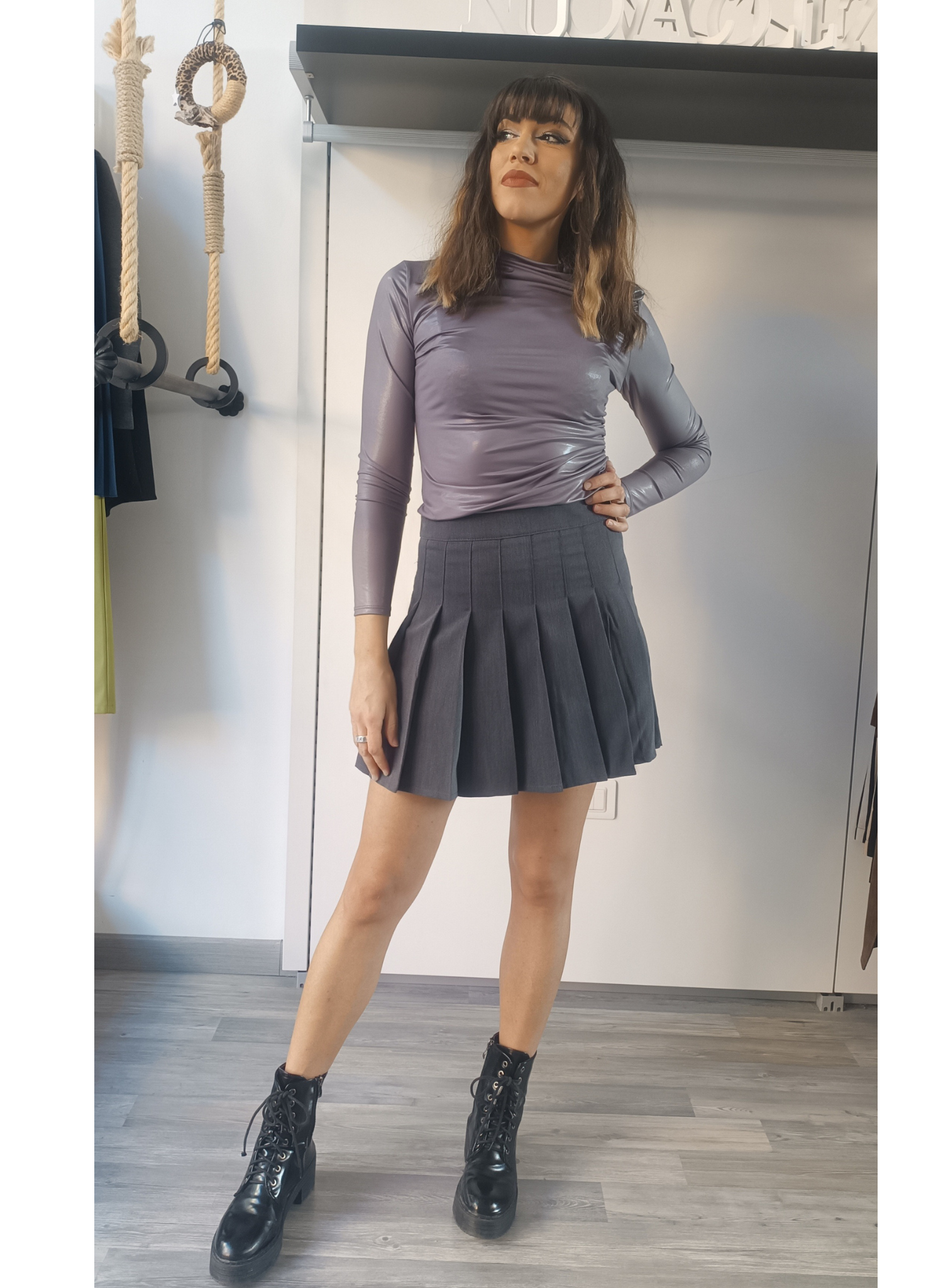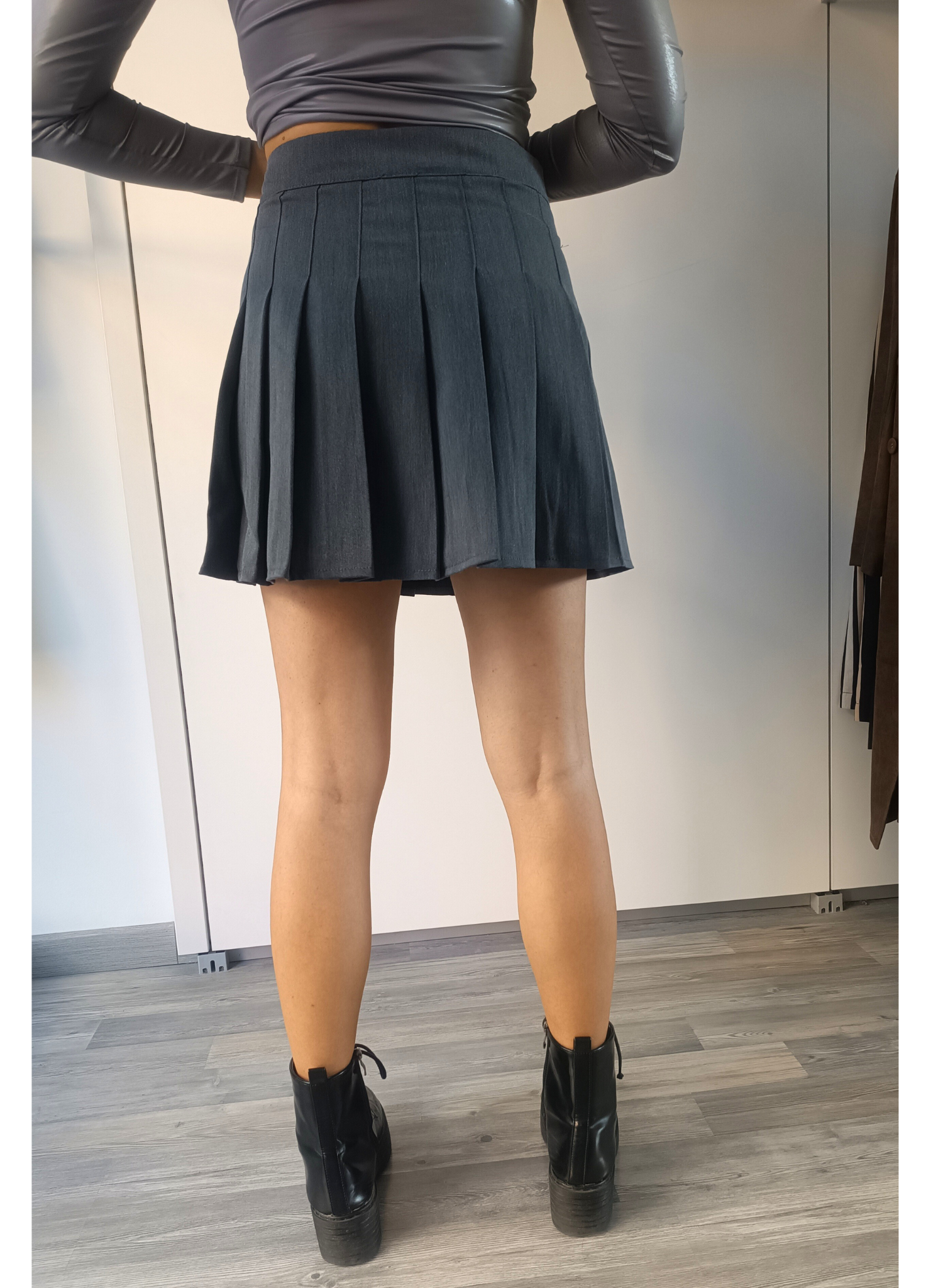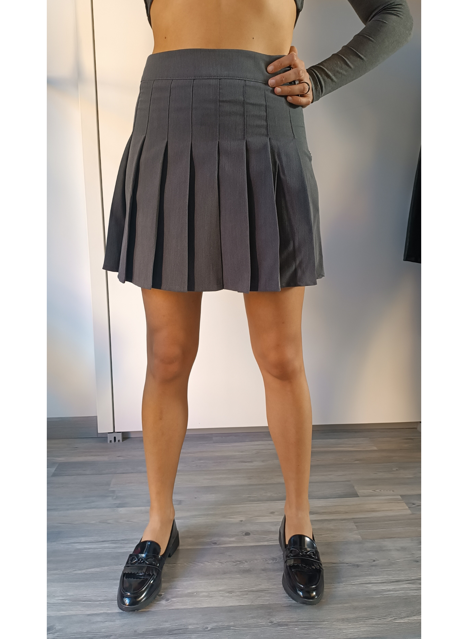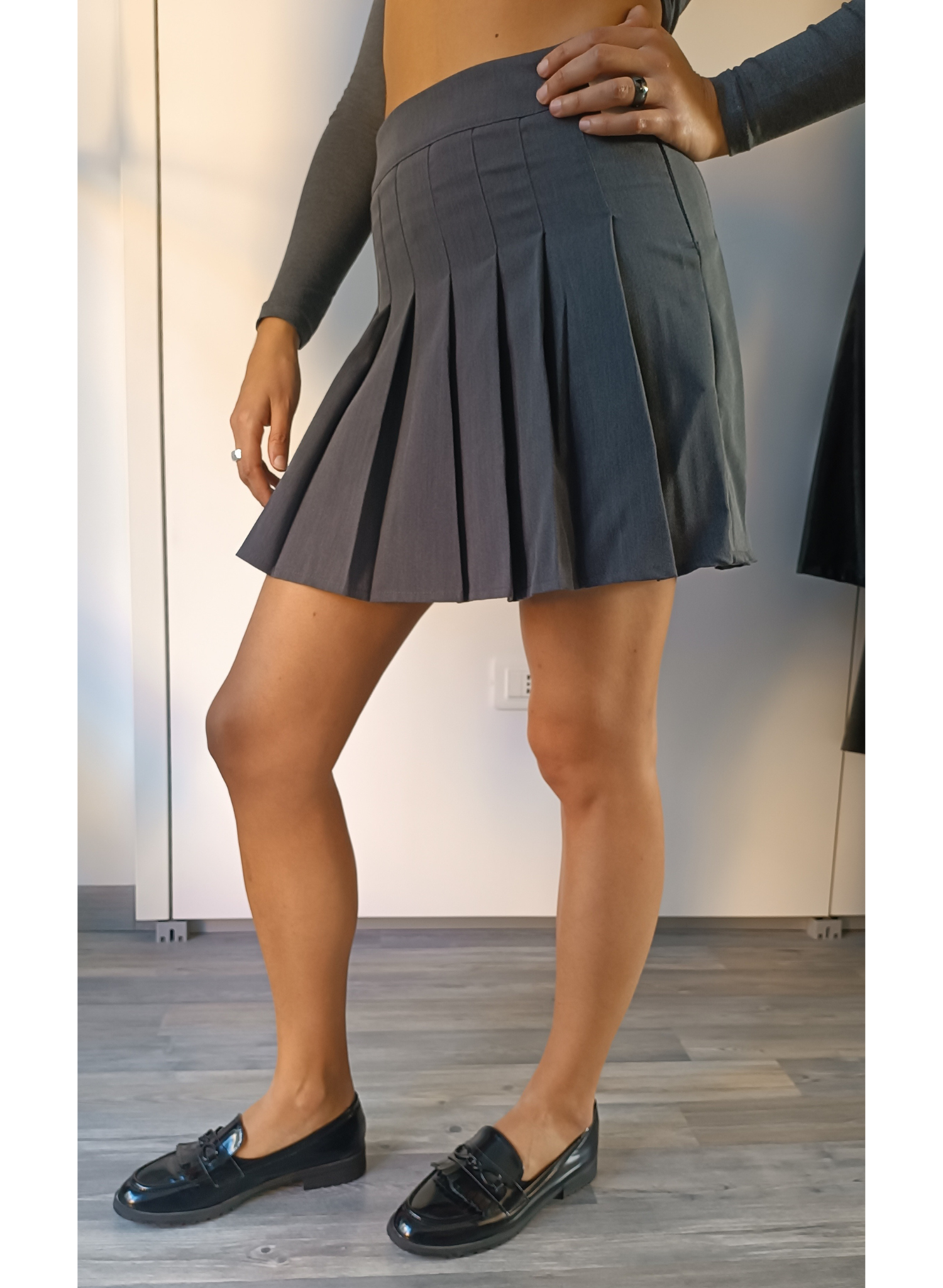 Minigonna grigia con eleganti pieghe che esaltano la silhouette