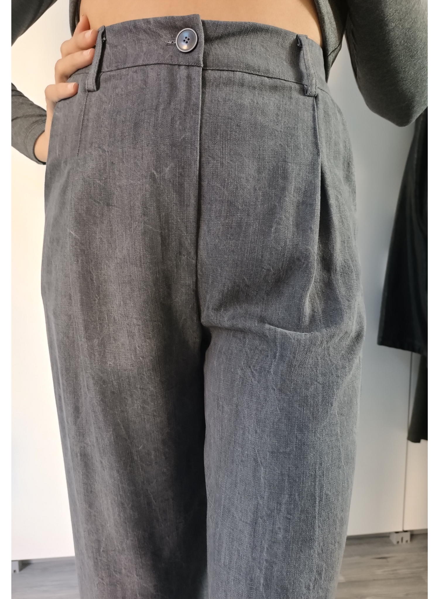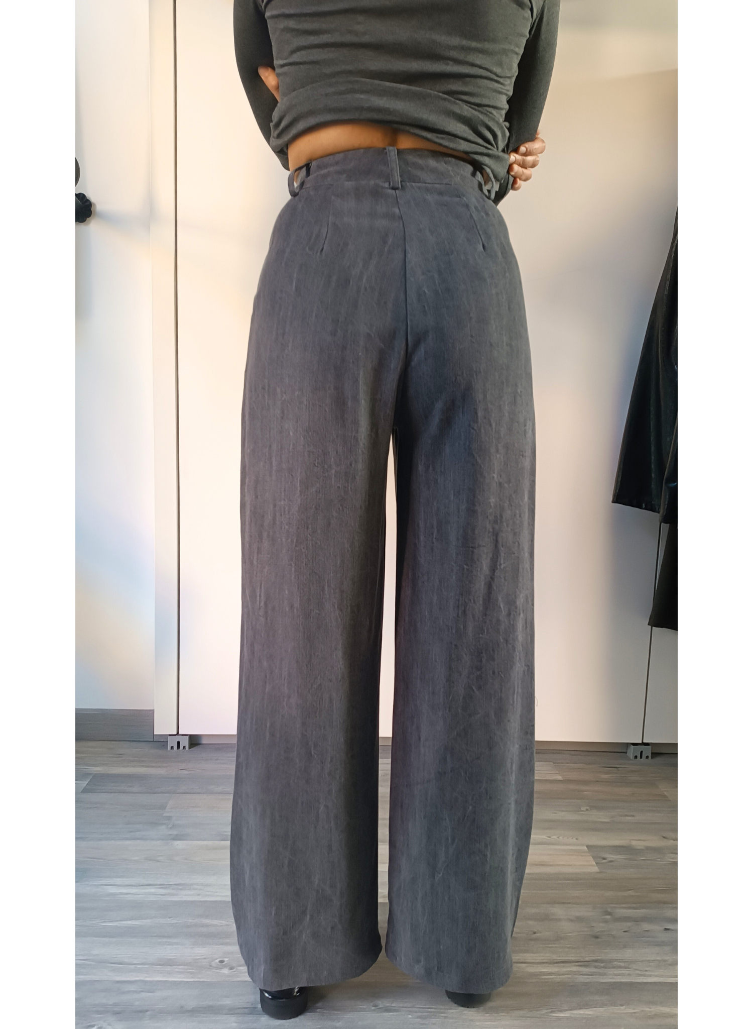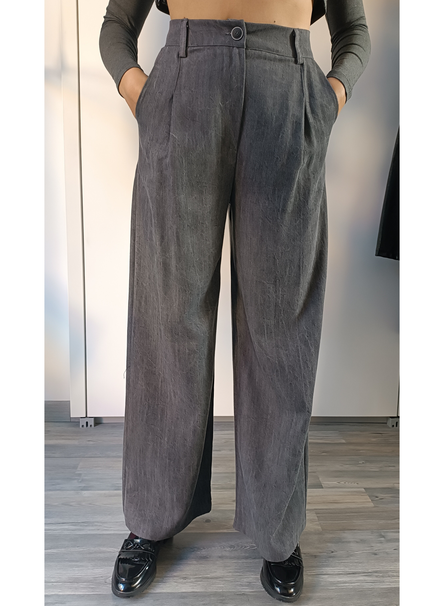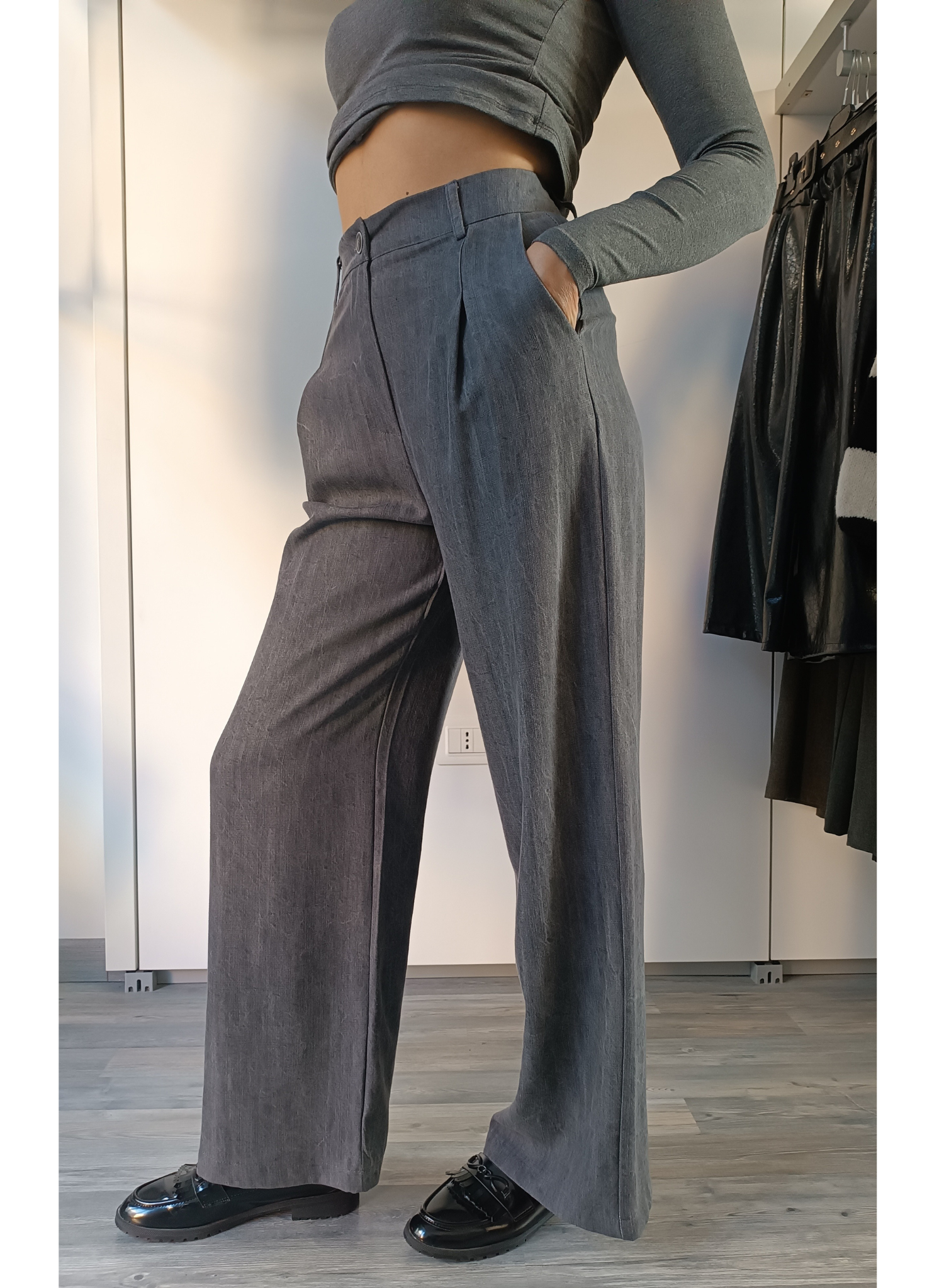 Pantaloni palazzo in colore grigio, effetto fiammato