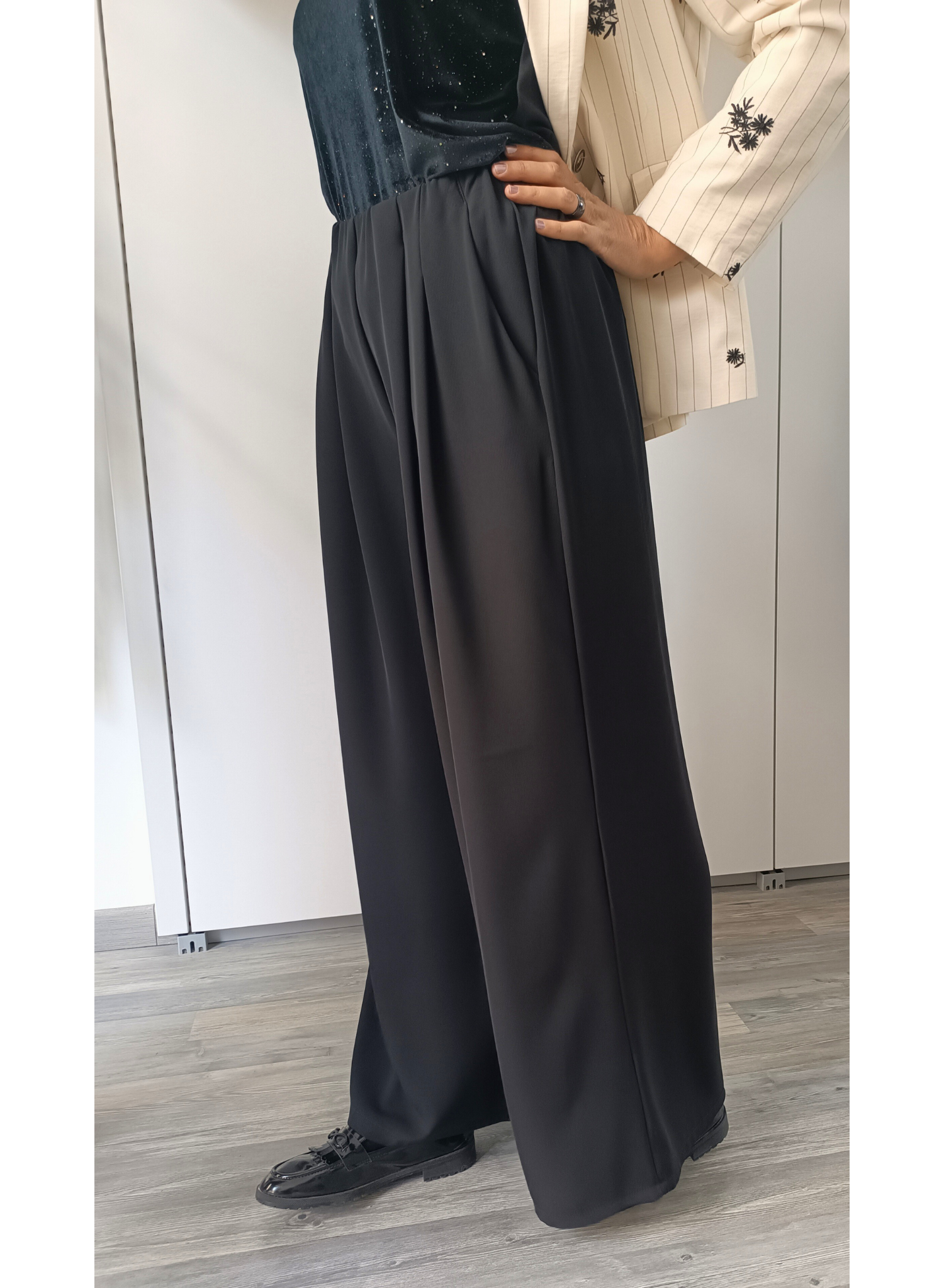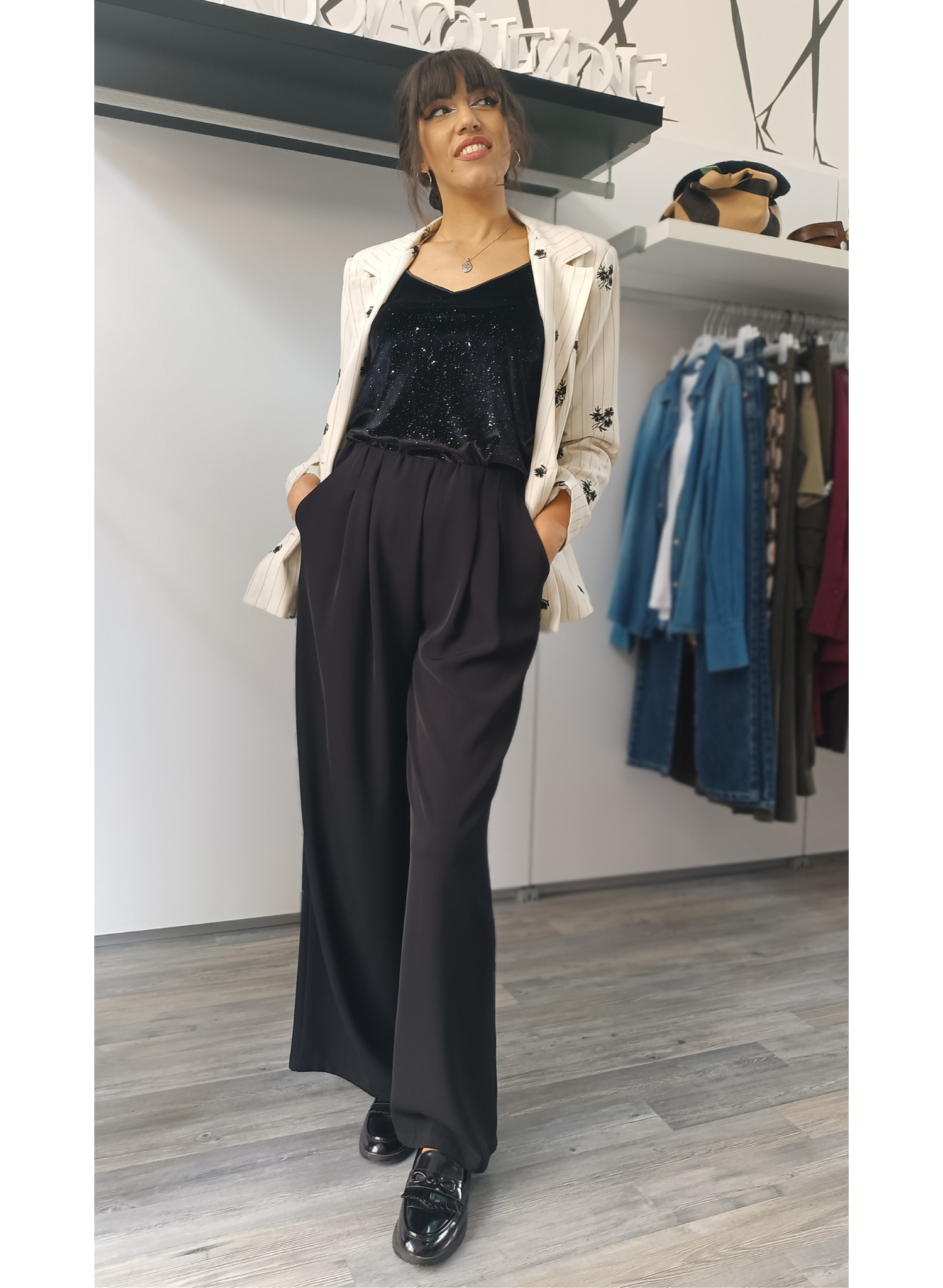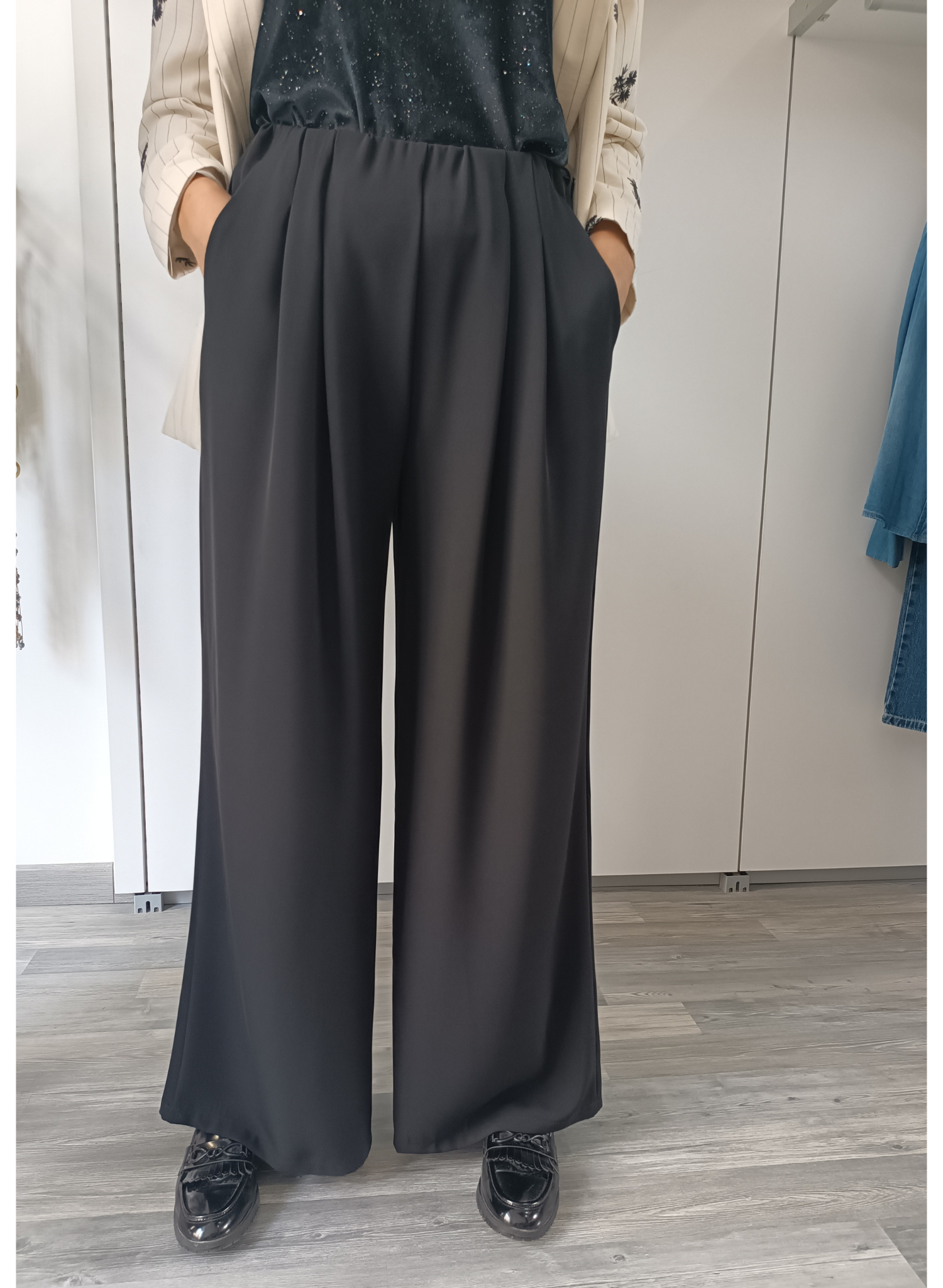 Sono in tessuto fluido e cascante, quindi dal taglio ampio che offre comodità e ne valorizza la linea ampia e femminile del capo