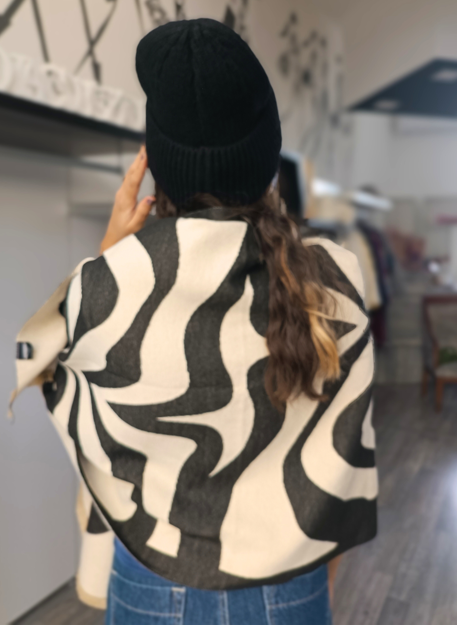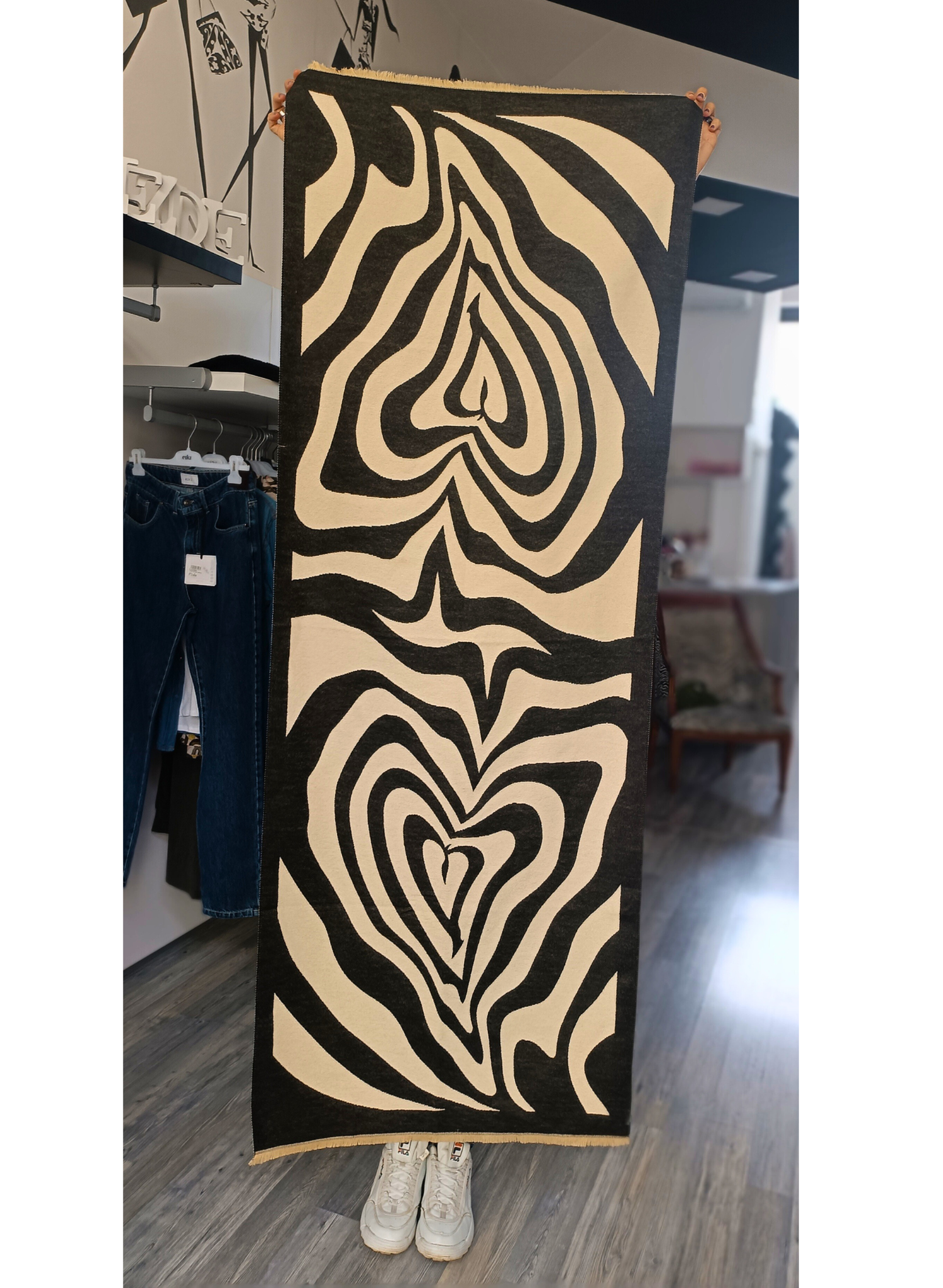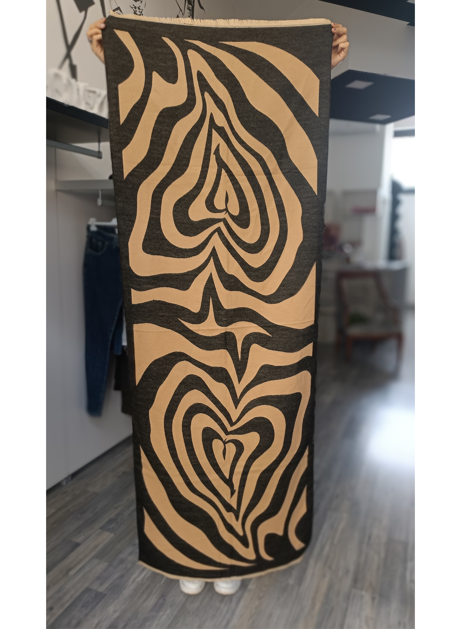 Sciarpa / Scialle, in stampa animalier, in colore panna e nero e in colore caffè e nero. Modello ampio, che aggiunge texture e volume