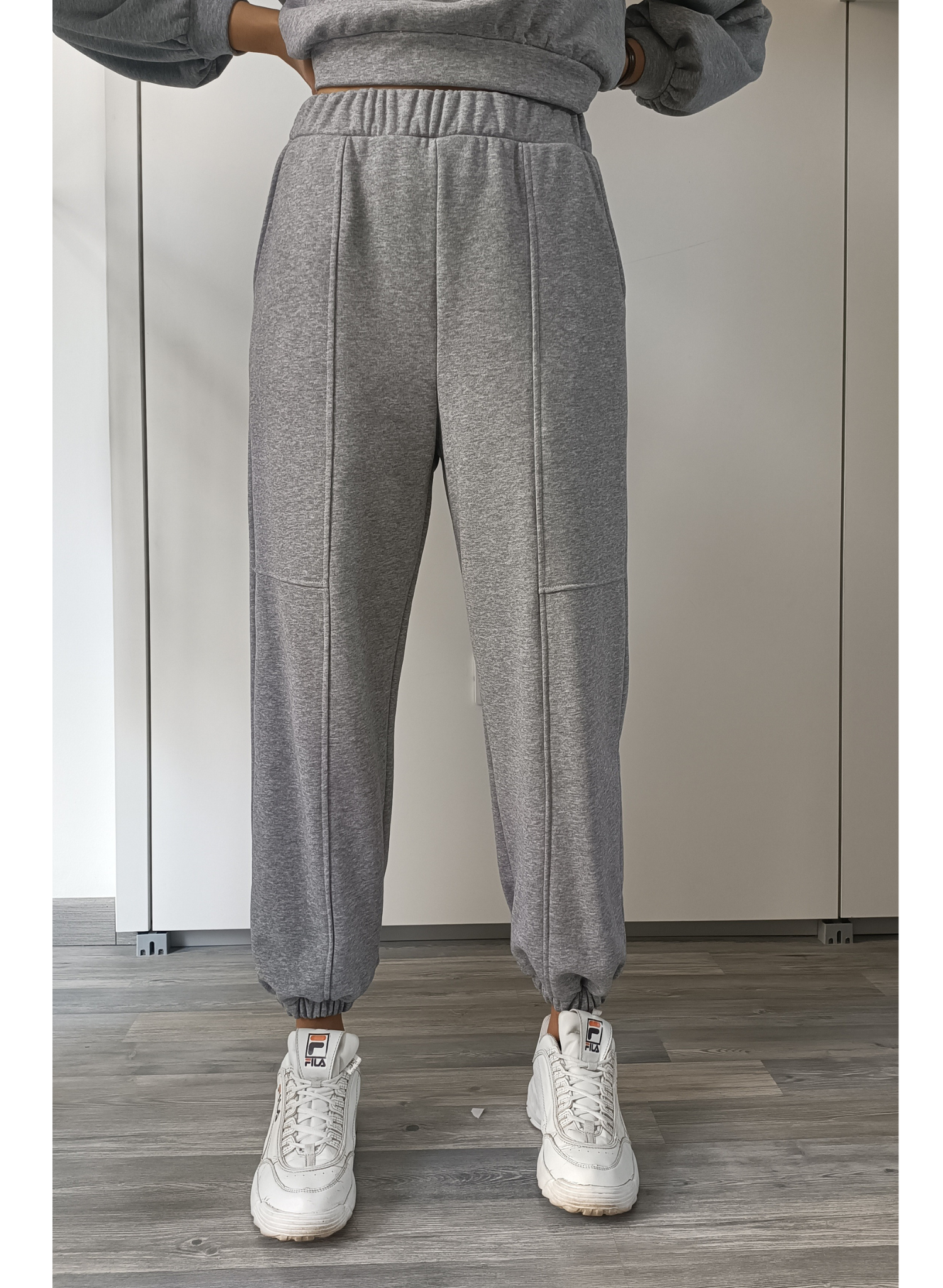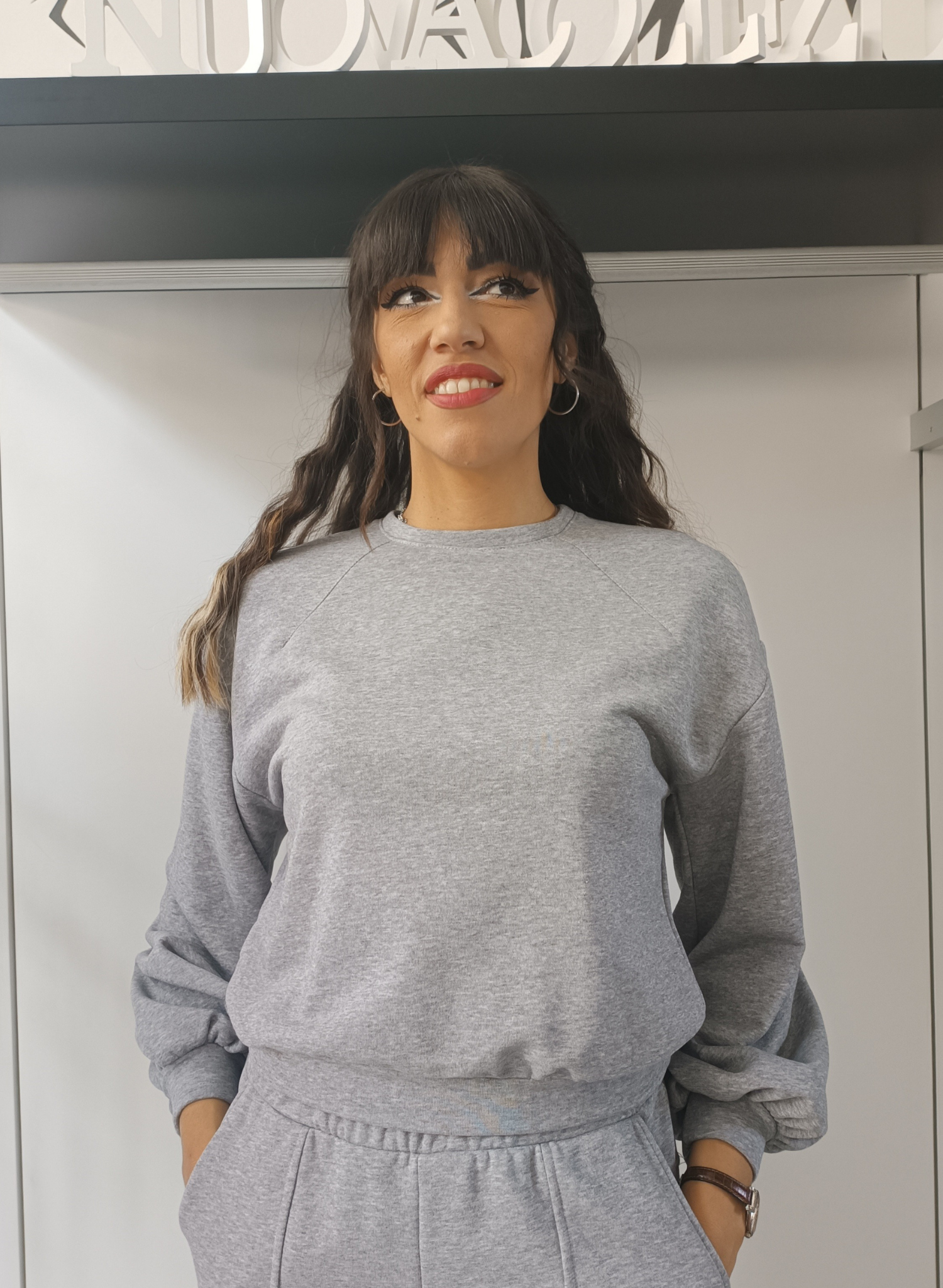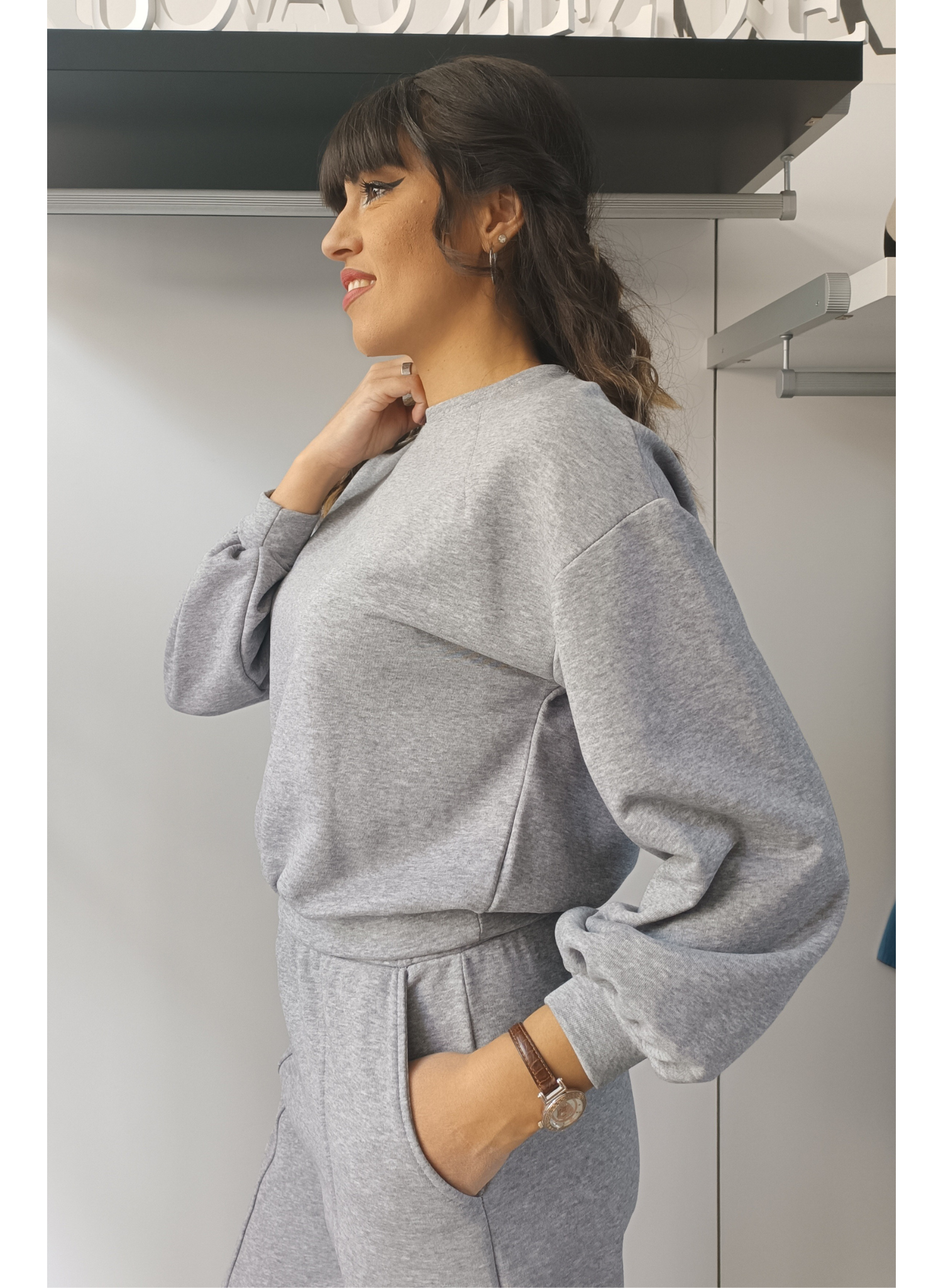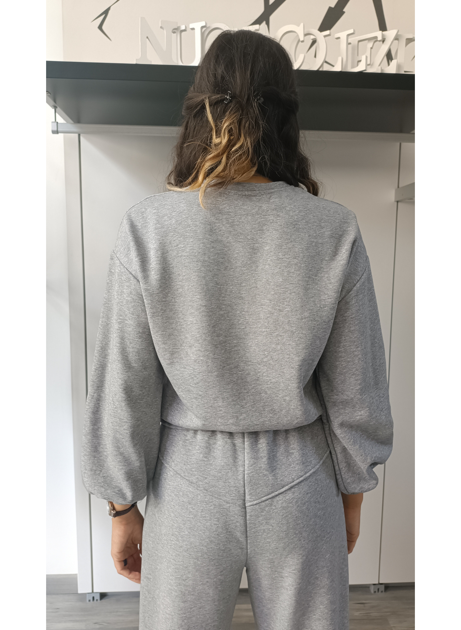 Tuta sportiva due pezzi, monocolore, grigio fitness, composta da maglioncino e pantaloni